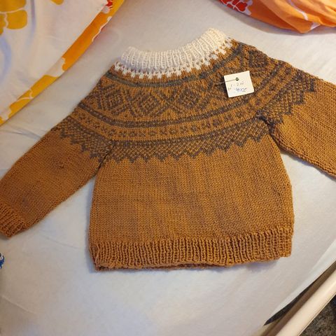 Hjemmestrikket genser 5-6 år med mariusmønster.