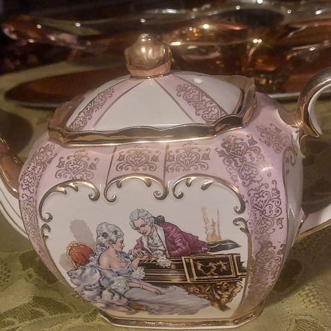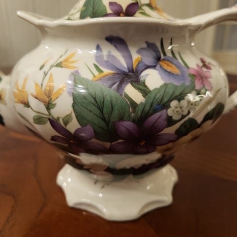 Engelsk nummerert Sadler tekanne i porselen med dekor