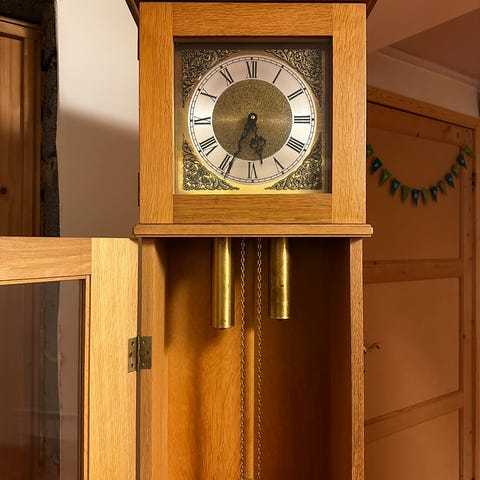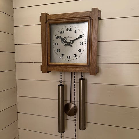 Super flott retro og elegant veggur. Klokken slår hver time med koselig klang, men dette er mulig å slå av. Vektene er justerbare.