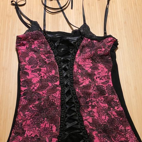 Nydelig singlet med pent lilla bånd, vakre detaljer. Kan tilpasses ettersom hvordan man strammet snøringen foran. :)