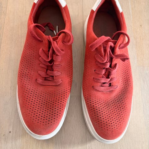 Kjempefine, røde tøysko / sneakers Roots Urban Classics, str 36. Kostet 699 kr ny. Kun brukt et par ganger. Litt småflekker på den hvite sålen, se bildene, men ikke mye. Ikke forsøkt å vaske det bort.