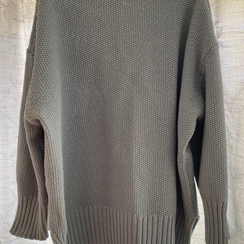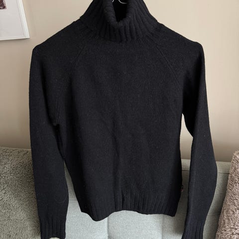 Flott ull genser i svart farge i nydelig fasong. Genseren er pent brukt. Det står ikke str på den men passer til M/L