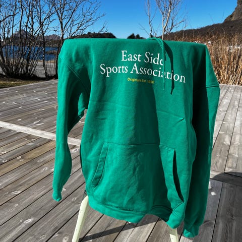 Fin og svært lite brukt genser fra Sporty and Rich med teksten «Good health starts here» på fremsiden. Behagelig grønnfarge.