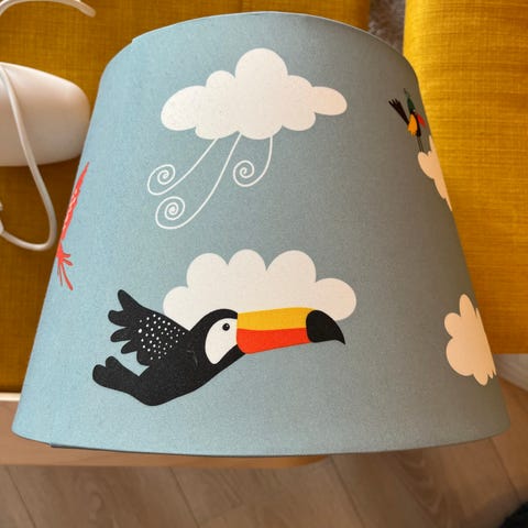 Kjempe fin taklampe i blå velour og gull detaljer.