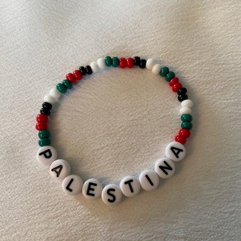 Stikkord: Perlearmbånd, Fri Palestina, Palestinsk solidaritet, Nøkkelpendant, Gaza hjelp