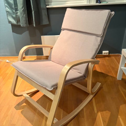 Jeg selger en hvit gyngestol i meget god stand.