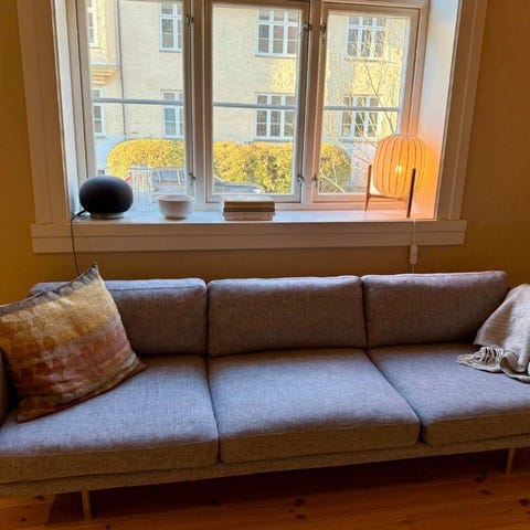 Fargen passer til alt, og blir et kult blikkfang i stua. Selger den da vi behøver mer sofa-plass.