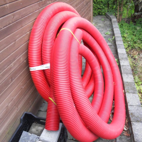 Fleksibelt dobbeltvegget rør. Yttermål 160mm, innermål 136mm.