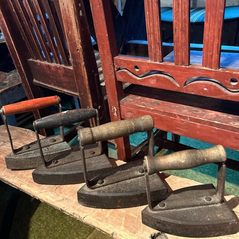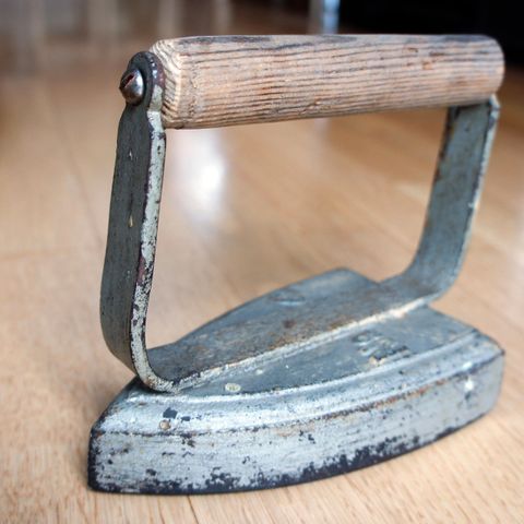Reisestrykejern fra 1950-tallet. Strykeflaten er 10 cm. Ledningen er slitt inne ved festet. Ellers veldig fint. Selges høystbydende over kr 120. Kan sendes med posten eller PostNord