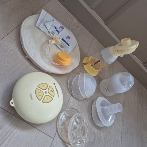 🌸Veldig god amme pumpe fra Avent selges med diverse tilbehør (om ønskelig). Den kan kobles til strøm og den kan være trådløs ved å putte 4stk AA batterier. 400kr