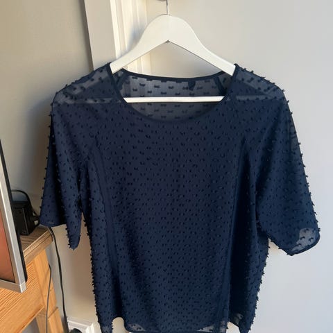 Mørkeblå bluse / topp m/sløyfer, og kort arm str S