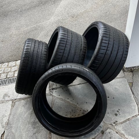 2 helt nye piggdekk selges billig, pris pr. stk. lagret mørkt og tørt innendørs
