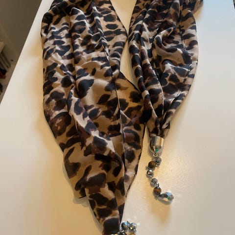 Jeg har for mange skjerf og rydder og prøver å selge videre. Skjerfet er knapt brukt. Lengde 160 cm. Bredde 25 cm. Fint også som sjal til og over kjole.