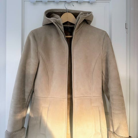 Beige fuske lammeskinnsjakke til dame. Den har et merke foran ved den ene lomma og et bak på ryggen ved sømmen. Se egne bilder. Må hentes i Kristiansand eller sendes om kjøper betaler frakt.