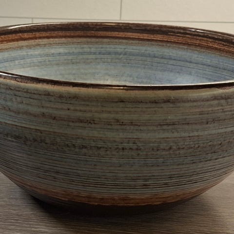Lava vase fra 60/70-tallet i grønt og brunt.