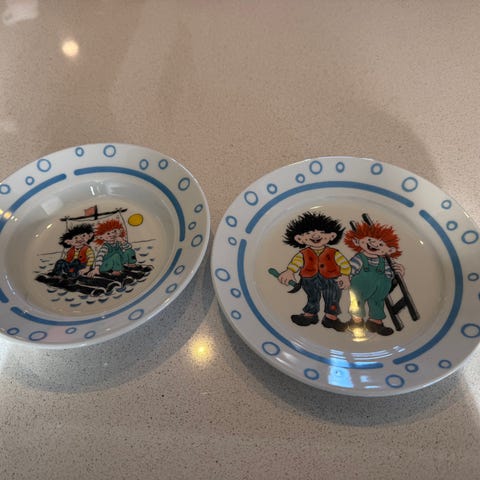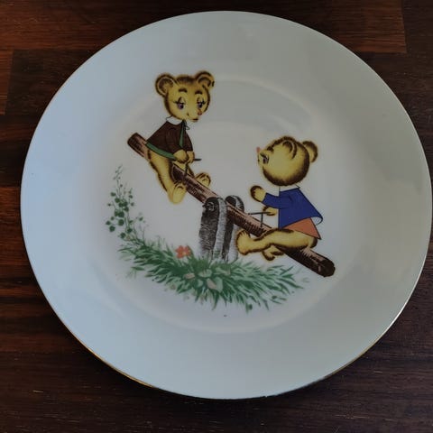Vintage pyntetallerken med koselig motiv