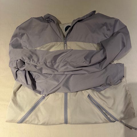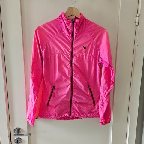 Tynn, deilig løpejakke fra Heldre med hette og lommer i front. Mesh under ermene og i sidene, samt spalte med Mesh i ryggen. Pent brukt.