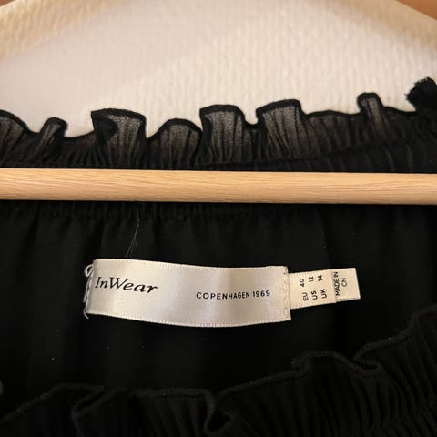 Nydelig, lett bluse med prikker fra Inwear. Størrelse 34. Gjennomsiktig på brystet og ermer, foret resten.