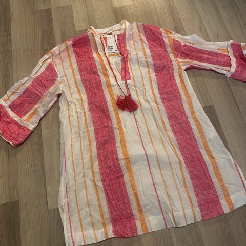 Selger en vakker hvit tunika/kurta med delikat gyllen brodering. Lett og behagelig stoff, perfekt for festlige anledninger eller som en elegant hverdagsstil.