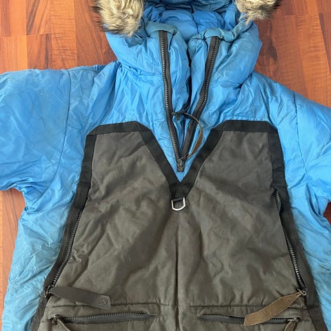 Noen år gammel Fjällräven Polar Expedition Parka M str M. Ingen synlig slitasje, men litt flekker her og der (se bilder). Pen mellomblå farge.