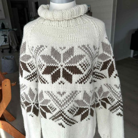 Prisen dekker kun garnkostnaden og ingen ting av jobben, så dette er et kupp! Strikket i Viking Garn Snorre.