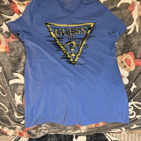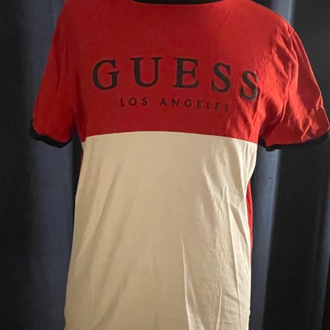 En pent brukt T-skjorte fra Guess selges, farge svart med gul skrift!