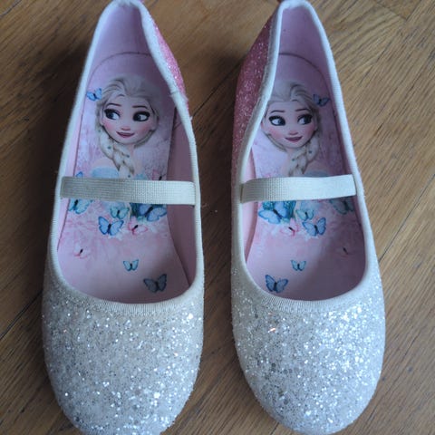 Sko fra HM med Elsa, hvitt glitter og liten hæl str 32.