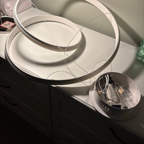 Nydelig taklampe kjøpt på Værnes elektriske i Trondheim. Vi har flyttet og finner ikke en fin plass til denne lampen lenger.