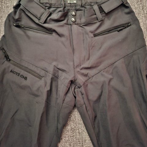 Pent brukt turbukse. Regulerbar i siden. Mange lommer, forsterkede glidelåser.