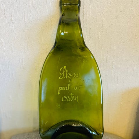 Sjeldent gammelt ostefat med skriften "skjær pent av osten"