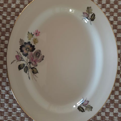 Lite fat i porselen 24 cm langt og 16.5 cm bred