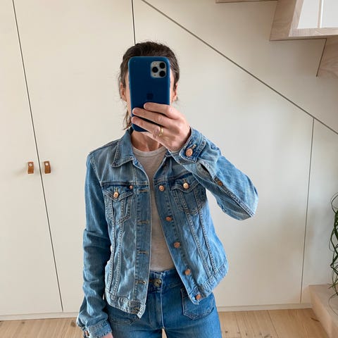 Lakserosa dongerijakke med frynser