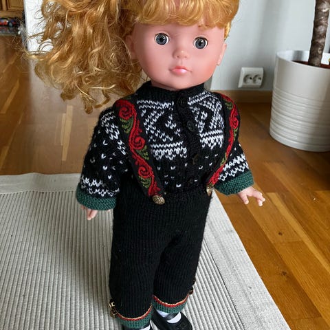 Trendy, hjemmestrikket, nydelig, figur/ dukke/bamse. Selges 250 kr.