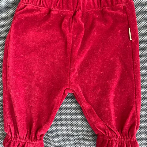 En søt rosa bukse i velour fra Hust & Claire i str. &6. Justerbar i livet. Buksa har en dekorativ sløyfe foran.