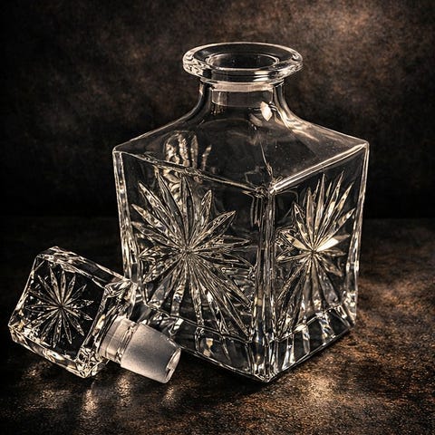 Vackert mångfacetterat glas med text. Starkt och glänsande glas.