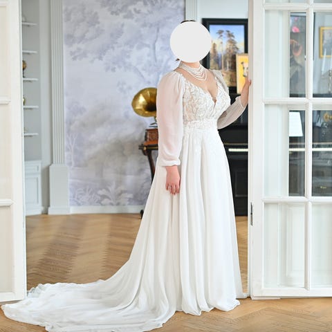 Selger min drømmebrudekjole, kjøpt ny på Brudehuset i Bergen. Den er brukt én dag, renset i etterkant, og klar for å bli med på noen andres drømmedag!👰 ♀️