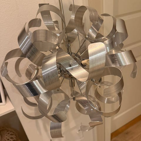 Består av flere lyskilder og "blader" i stål look omkranser lyset. Gir godt lys og kan evt dimmes.