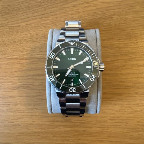 Råtøff dykkerklokke fra BENRUS. Klokken har tøff grønn urskive og er tidsriktig «no-date».