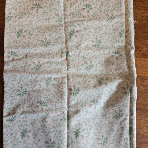 3 stk ca 1,3 x 1,2 m, pluss litt til. Tynt og skjørt stoff. Se andre annonser for flere stoffer.
