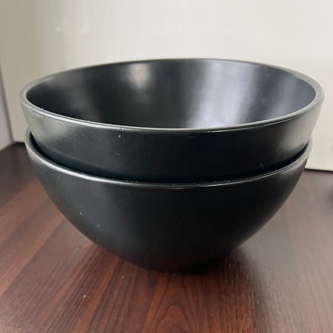 Ubrukt frokost-service i ulike farger, ubrukt. 6 stk kopper, tefat og asjetter, samt fat og sukkerskål.