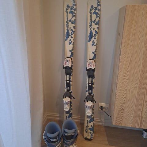 Godt brukte slalåmski på 127 cm. Føler ikke med støvler.