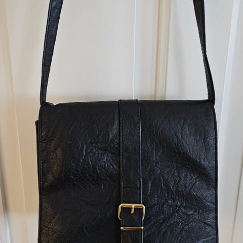Sort veske med regulerbar lenke. Kan brukes enkel som skulderveske eller dobbel som håndveske.