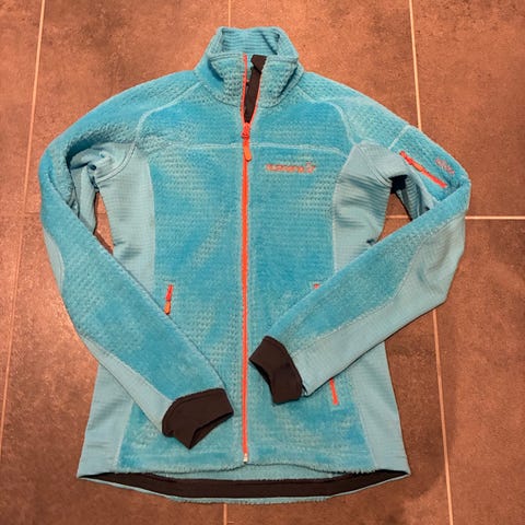 Peak Performance genser for dame i størrelse S. Genseren har høy hals med halv glidelås i front og en brystlomme med glidelås. Den er i blå farge med paneler i ulik tekstur for økt komfort og bevegelsesfrihet. Passer til hverdagsbruk og ulike utendørsaktiviteter.