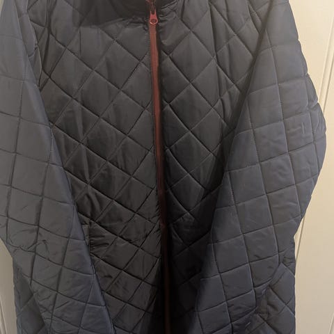 Ganni Greenwood bomber jacket i beige camo mønster med navy fór og kant. Oppleves som normal i størrelsen. Jakken er noen år gammel, og man kan se at den er brukt, men det er fortsatt mye bruk igjen. Ingen rifter eller flekker på det beige stoffet. Det eneste jeg har å bemerke er at det er nupper på det blå stoffet nede på høyre side. Se bilde 5 og 6. Alt i alt er jakken fortsatt veldig fin!