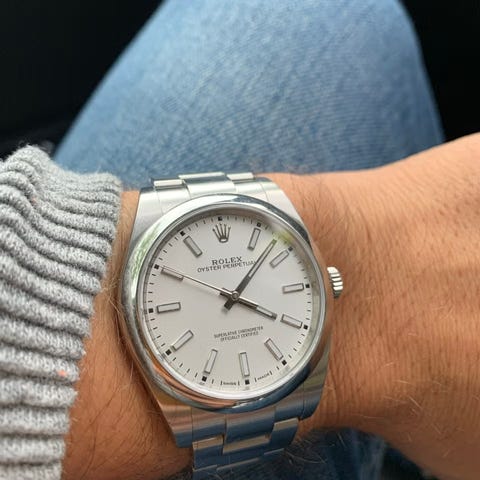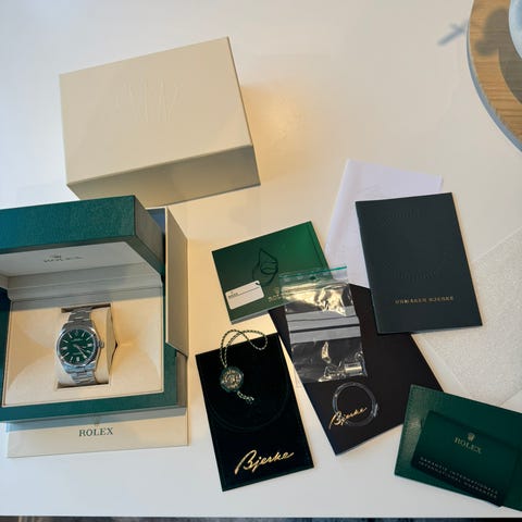 MEGET PEN Rolex Oyster Perpetual 36 mm med grønn skive til salgs!