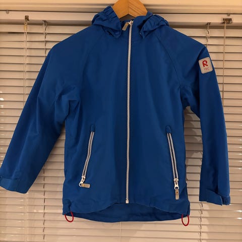 Reima Barents vattert barnevest i blå farge, størrelse 128. Vesten har hette og glidelås foran. Egnet som ytterplagg for barn, gir lett isolasjon og komfort.