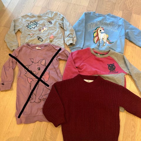 Selger en klespakke med gensere i str 92. En genser fra GAP, en fra Adidas, og en fra Disney. Et lite merke på den fra Adidas, se bilde.
