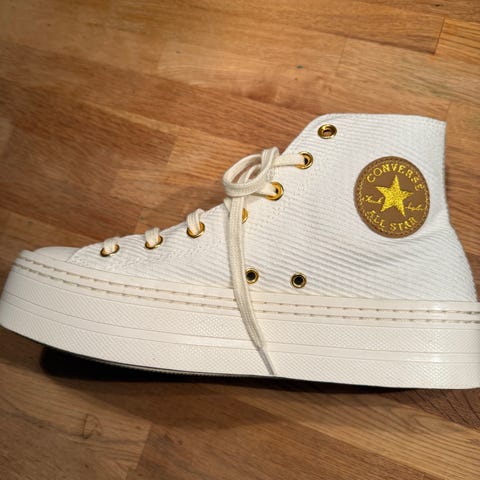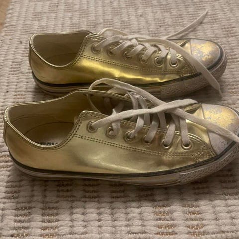 Pent brukte hvite Converse med krystaller selges.