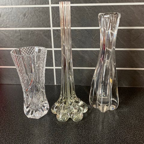 Vintage krystall blomstervase med dekor