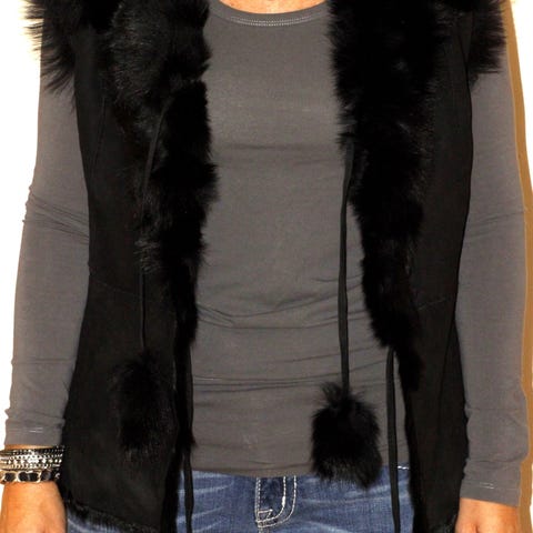STRØKEN OG TIDLØS RICCOVERO VINTAGE PELSVEST MED KRAGE - SELGES.